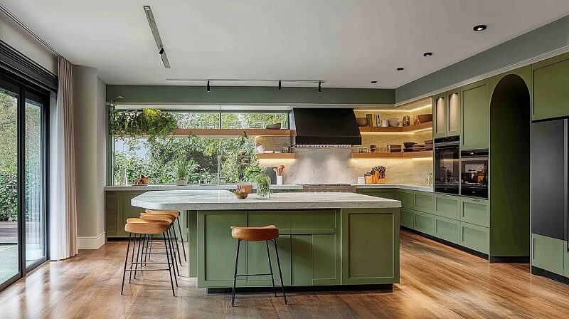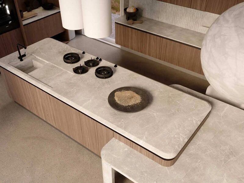 Una de las tendencias más marcadas del 2026 será el uso de formas suaves. En lugar de líneas rectas y esquinas duras, las islas de cocina, penínsulas y encimeras adoptarán contornos curvos que favorecen una sensación más fluida y acogedora.