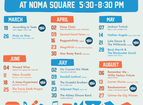 Comenzamos nuestra recomendación con Downtown Alive, que se realiza en el centro de Greenville. Desde el mes de marzo y hasta agosto, todos los jueves son de música en vivo en NOMA Square.