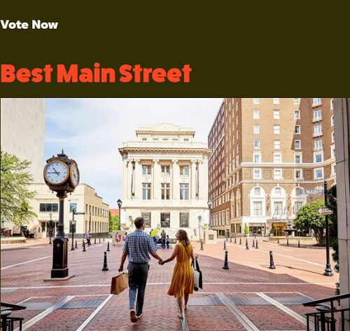 Además de estar nominada a USA Today 10Best Readers’ Choice Awards, nuestra Main Street fue reconocida anteriormente por el National Trust for Historic Preservation como la gran calle principal americana, un título que resalta su importancia dentro de los proyectos de revitalización urbana en Estados Unidos.