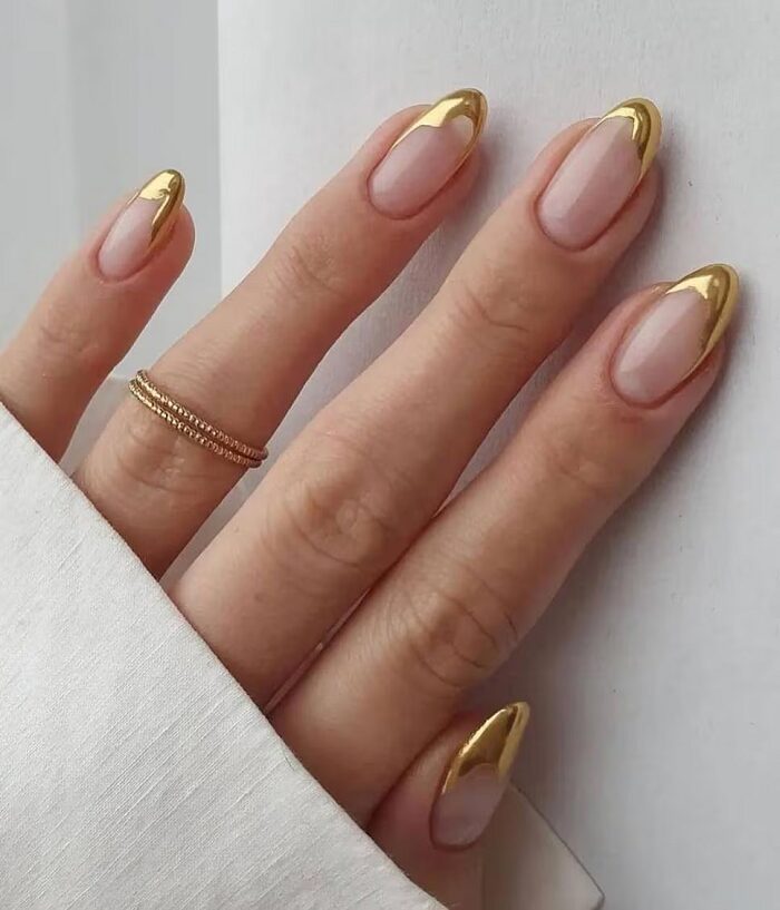 El dorado sigue siendo el color por excelencia de la Navidad, y en las uñas nude adquiere un carácter elegante y contemporáneo.