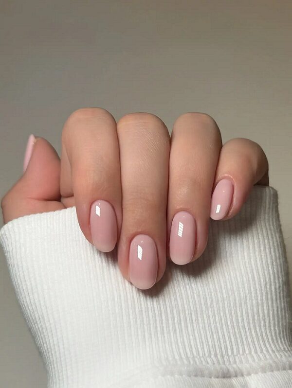 Una forma sutil y moderna de transformar la manicura nude es añadirle un acabado con reflejos perlados o ligeramente iridiscentes.