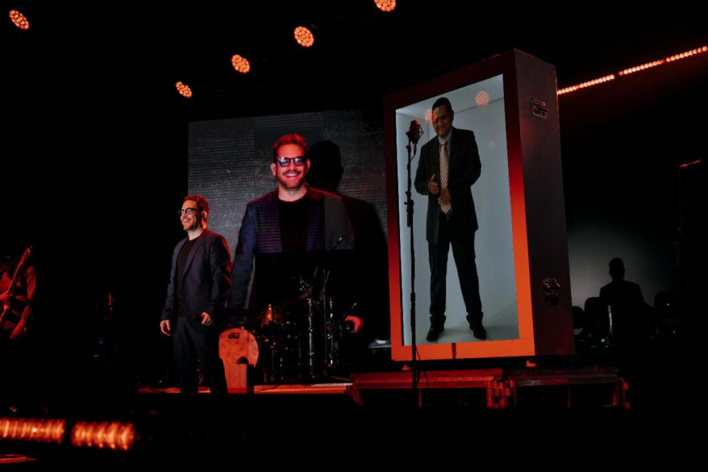 Mediante un avanzado sistema holográfico y el uso de inteligencia artificial, Velasco logró aislar y restaurar la voz original de Jaramillo para recrear su presencia en tamaño real sobre el escenario.