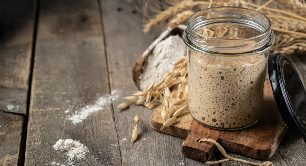 Este fermento natural, elaborado únicamente con harina y agua, permite prescindir de la levadura industrial y obtener un resultado con mejor textura, aroma profundo y mayor digestibilidad.