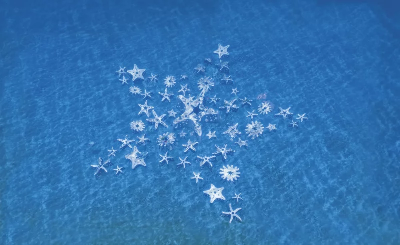 La fundadora de REEFLINE, Ximena Caminos, concibió la idea junto al arquitecto Shohei Shigematsu para promover la restauración de arrecifes y sensibilizar sobre el impacto ambiental.