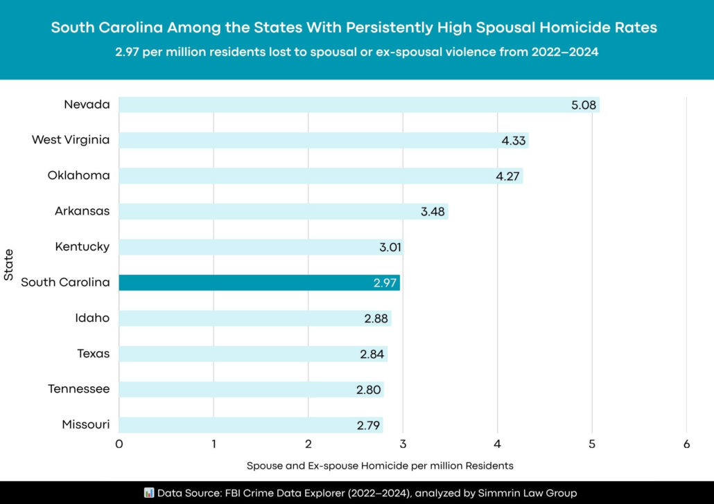 “Los hallazgos resaltan que Carolina del Sur continúa enfrentando un riesgo elevado de homicidio conyugal, con tasas casi un 45 % superiores al promedio nacional”, refirió un portavoz de la firma de abogados.